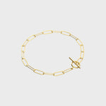 Introducing the T-bar Paperclip Chain Bracelet - an elegant yet subtle statement piece. Crafted with 24ct gold plate and Sterling silver, pair with the matching necklace to add an individual touch of glamour to any look. Accent your style with the classic paperclip chain design, secured with a T-bar fastening. An essential addition to any jewellery collection.