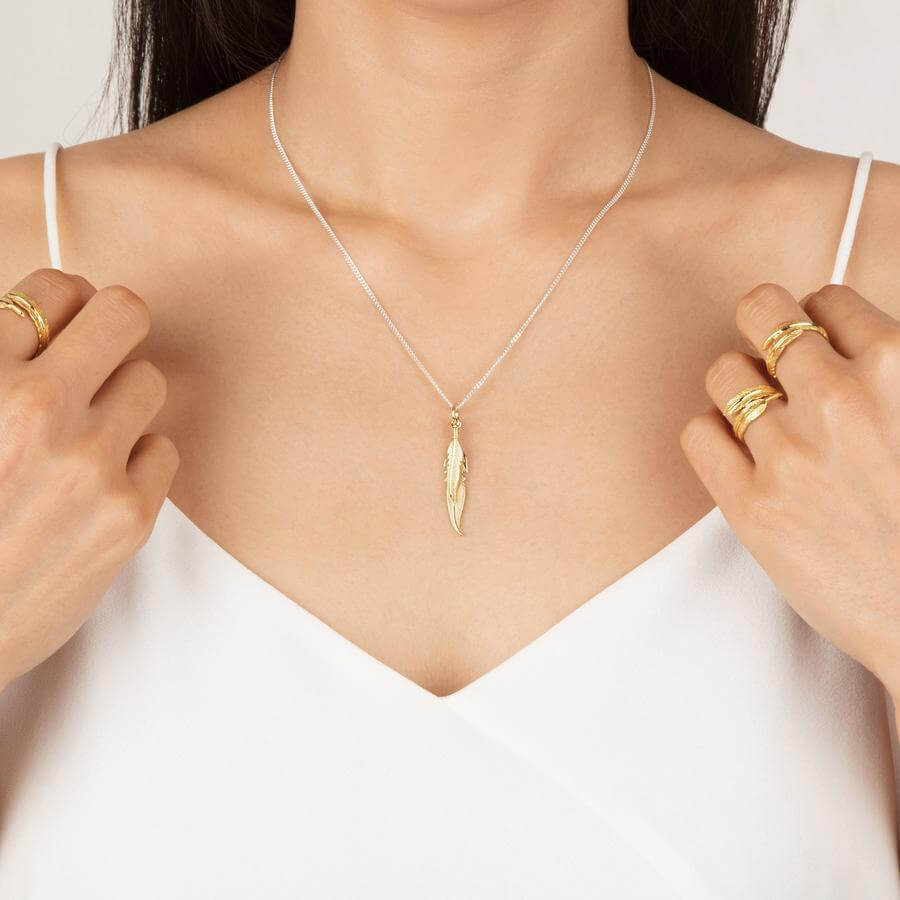 The Dual Plume Necklace is cast in 18ct gold combining effortless elegance with meaning.