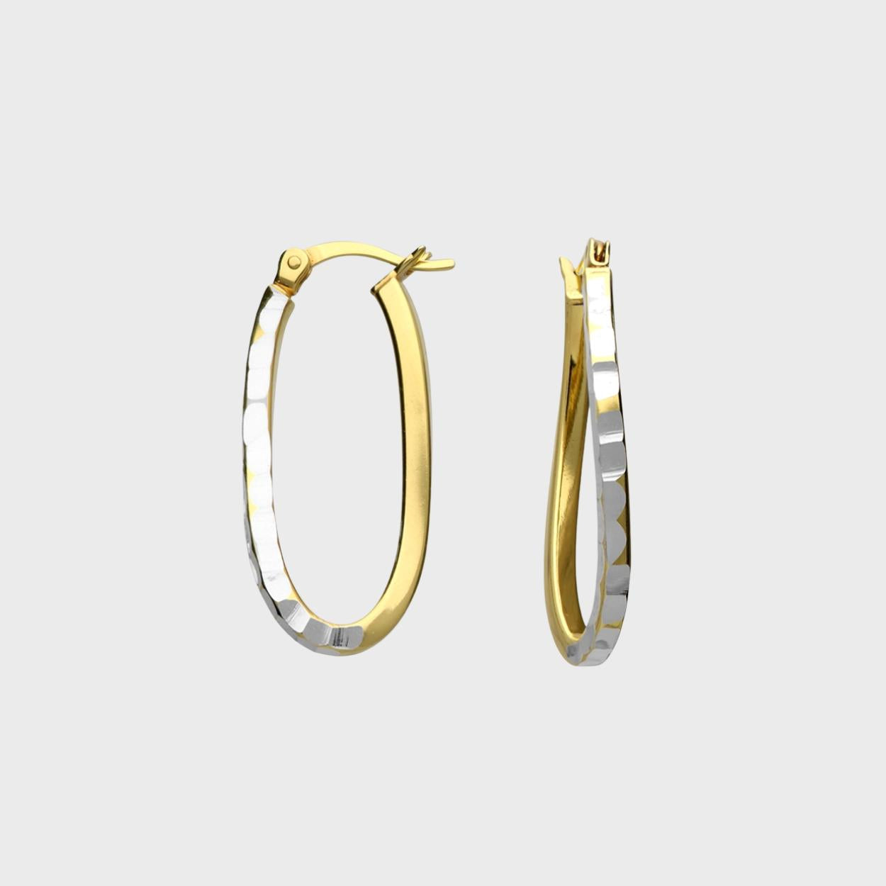Crafted from sterling silver and adorned with 18ct gold plating, these earrings feature a unique twisted oval design that adds an asymmetrical and eye-catching touch to any outfit.