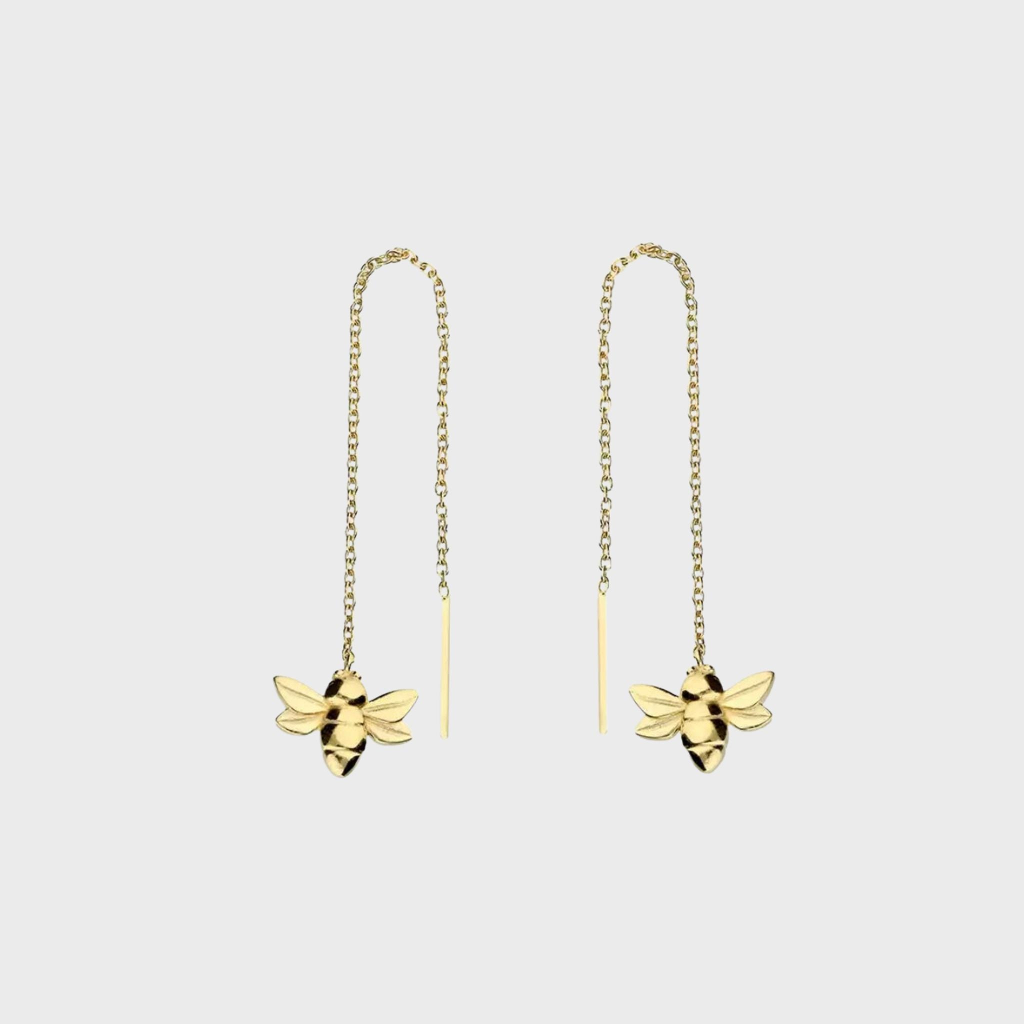 These Worker Bee Pull Through Earrings will bring elegant style to any look. Crafted from 925 sterling silver with an 18ct yellow gold plate or rhodium plate, they feature a stunning worker bee drop design. Wear them for a bold and beautiful statement.