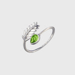 Adjustable Silver & Crystal Leaf Birthstone Ring - August