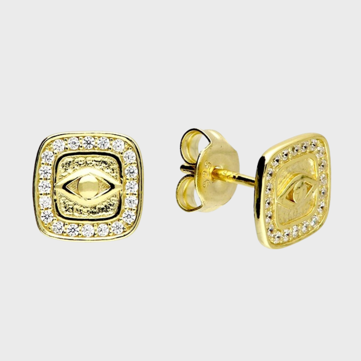 Let our sterling silver and 18ct gold-plated Evil Eye Stud Earrings become your cherished talisman. More than just a stunning accessory, these earrings are a symbol of protection, quietly shielding you from negativity. Wear them as a reminder of your resilience and elegance, adding a touch of radiance to your journey through life.