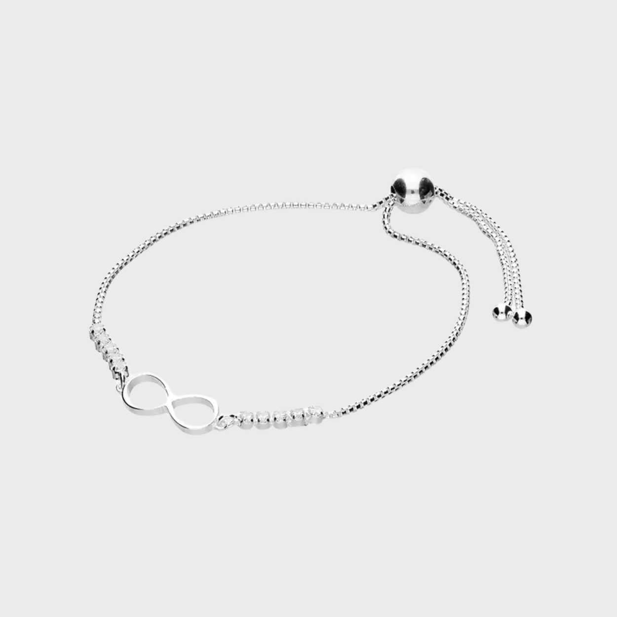 Our Crystal Infinity Slider Bracelet captures this timeless meaning in sterling silver, adorned with sparkling cubic zirconia stones. The smooth, adjustable slider offers a perfect fit — a gentle reminder that life flows to your own rhythm. Elegant and symbolic, this bracelet is more than jewellery; it’s a reflection of your journey, your growth, and all that lies ahead.