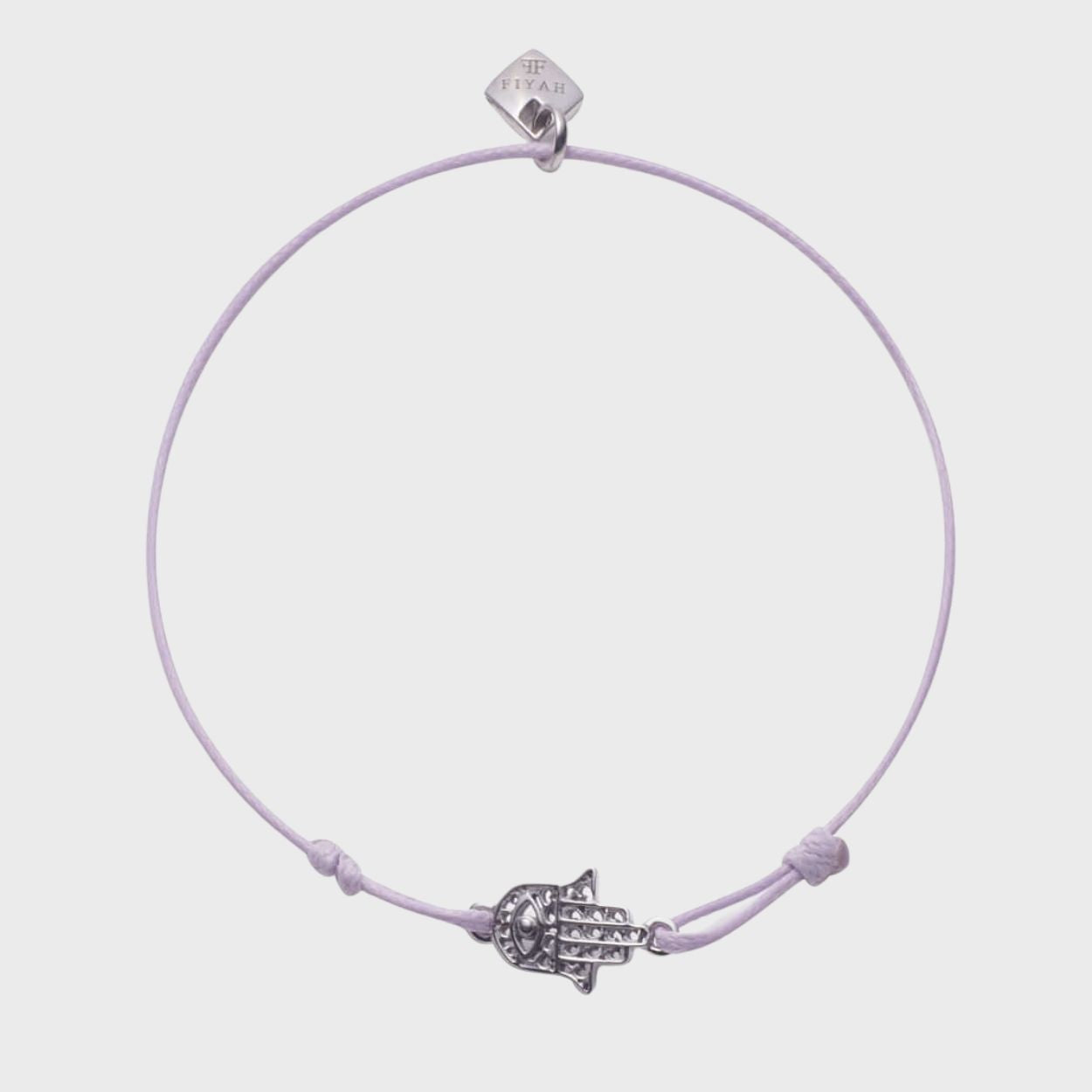 The palm-shaped amulet is a well-recognised symbol known for protection, power, strength and good luck. The Adjustable Hamsa Hand Friendship Cord Bracelet is crafted from a 2mm lilac cord featuring an 925 sterling silver Hamsa Hand charm. Its fine hand-knotted textile style makes it the perfect gift or piece of appreciation for any loved one.