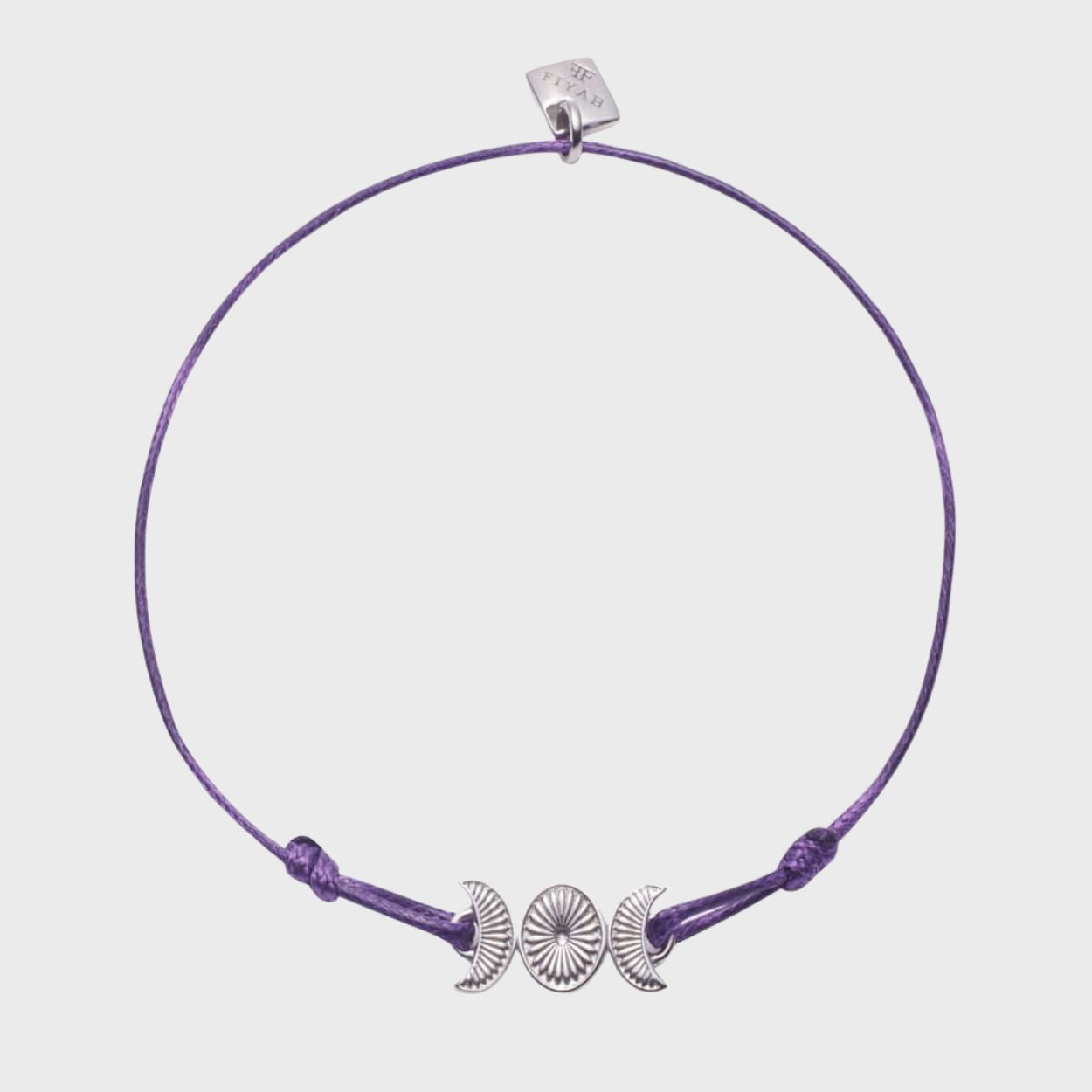 As a symbol of wisdom and female empowerment the Adjustable Moon Phases Friendship Cord Bracelet is beaming with personal growth. Crafted from a 2mm purple cord featuring a 925 sterling silver moon phases charm, this is the perfect gift or piece of appreciation for a loved one.