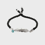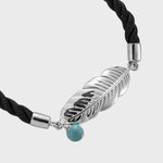 When a feather is paired with a turquoise gemstone there is one destined outcome: comfort from the presence of a guardian angel to protect and guide you. Here they are paired on a quality woven black fabric bracelet that will fit any wrist. Pinched off with silver bands, this is a comforting and stylish adornment for jeans, a summer dress, or an elegant evening gown. Wear it with an Adjustable Guardian Necklace for a coordinated spiritual look.