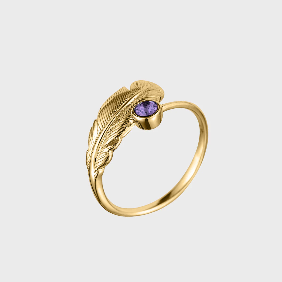 Meaning: Through its feather design, this birthstone ring brims with positive light energy, helping to dispel negative energies while symbolising the protection of angels.
