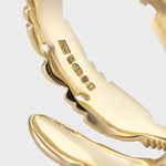 Our best selling Adjustable Plume Ring is now available cast in 18ct gold. This piece is hallmarked in the UK by the Goldsmiths' Company Assay Office in London.