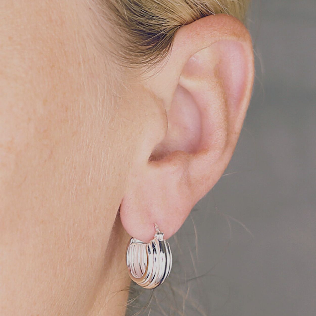 Make a statement with these exquisite and eye-catching barrel chunky medium hoop earrings! Crafted with 14ct gold plate and sterling silver, these earrings are the perfect accessory for any outfit, for any occasion. Shine bright and turn heads now!