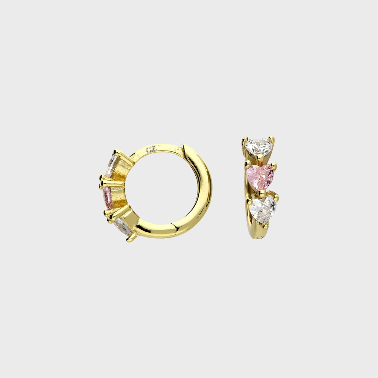 These earrings are available in sterling silver or 14ct yellow gold plate, ensuring a timeless addition to your jewellery collection. Each earring features three exquisite cubic zirconia gemstones meticulously arranged in the shape of a heart, creating a captivating and romantic allure.