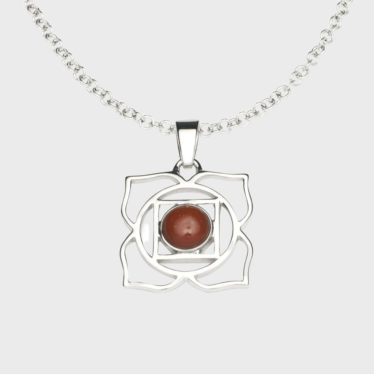 The root chakra is located at the base of the spine. It is characterized by the emotions of survival, stability, ambition, and self-sufficiency. A blocked root chakra can manifest as physical issues like arthritis, and bladder or colon problems, or emotionally through feeling insecure about finances or our basic needs and well-being. When it's in alignment and open, we will feel grounded and secure, both physically and emotionally.
