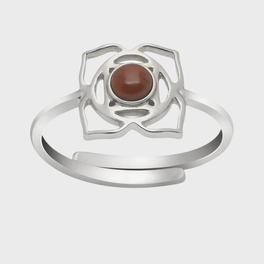 Adjustable Silver & Red Jasper Root Chakra Ring