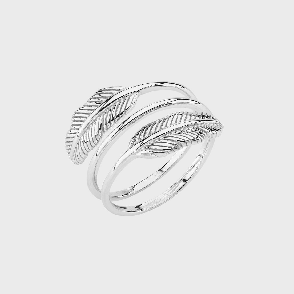 The Adjustable Moment Ring is a feather cast in sterling silver and coated in rhodium or 18ct gold plate. It is fully adjustable to fit any finger or thumb, so you don't need to worry about size.