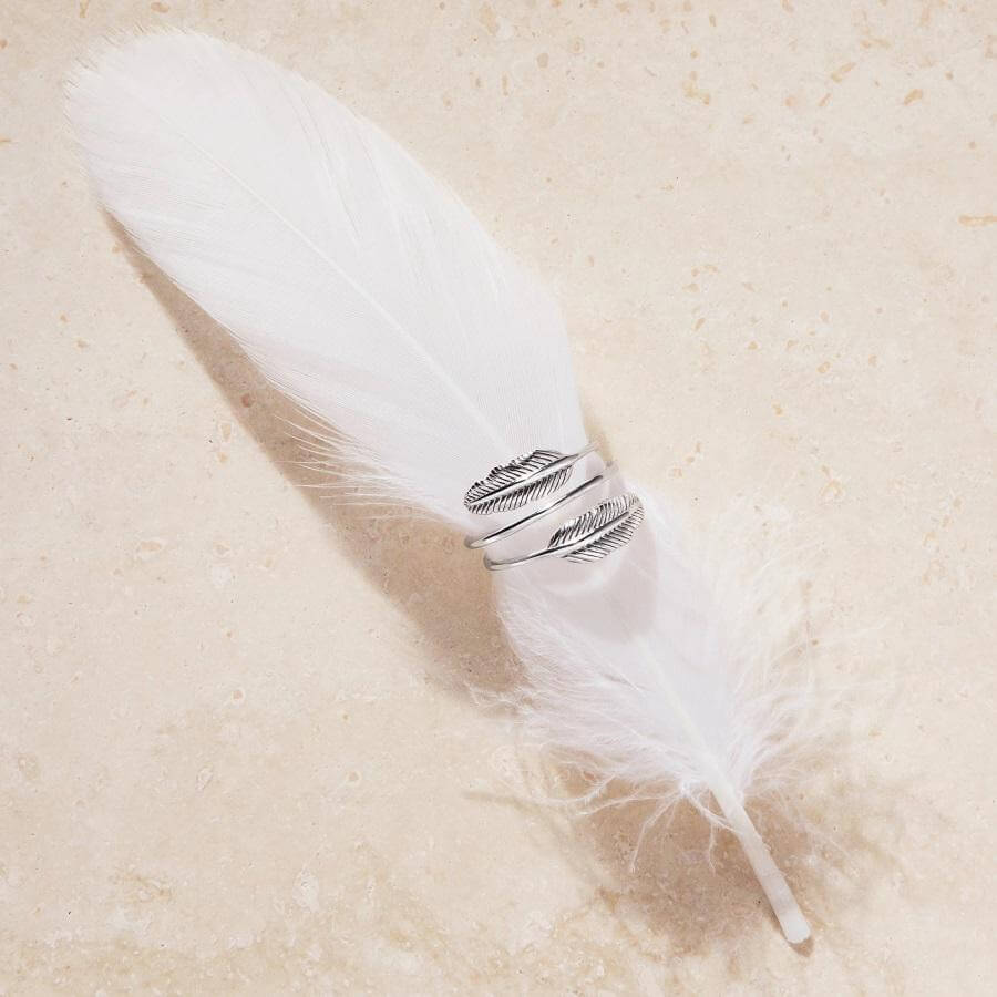 This silver feather ring encourages our awareness and belief that angels are always nearby, supporting our choices in life.