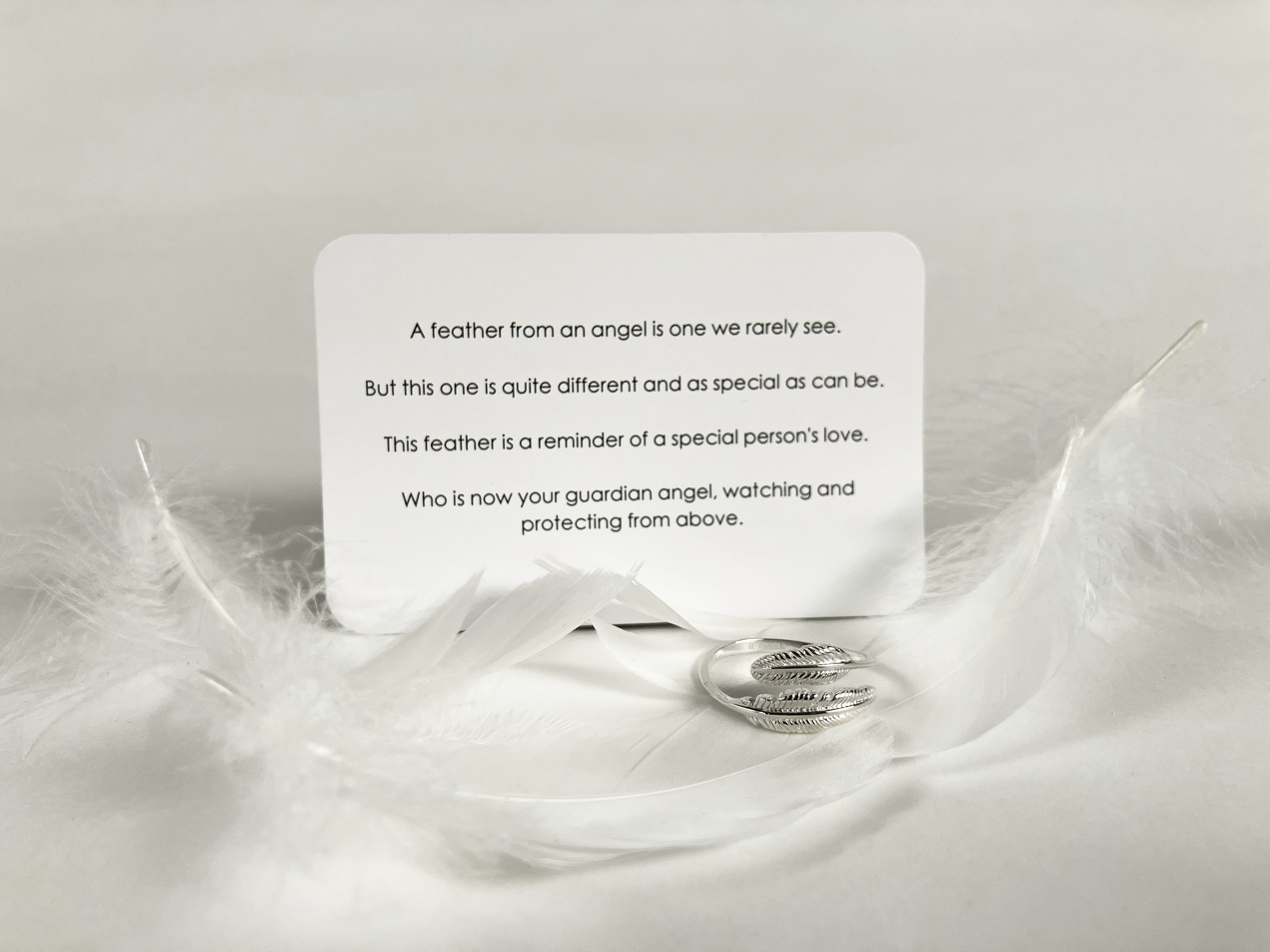 Paired with the Adjustable Protection Feather Ring, the poem becomes a gentle reminder that we are never truly alone – love lives on, carried by the wings of our guardian angels.
