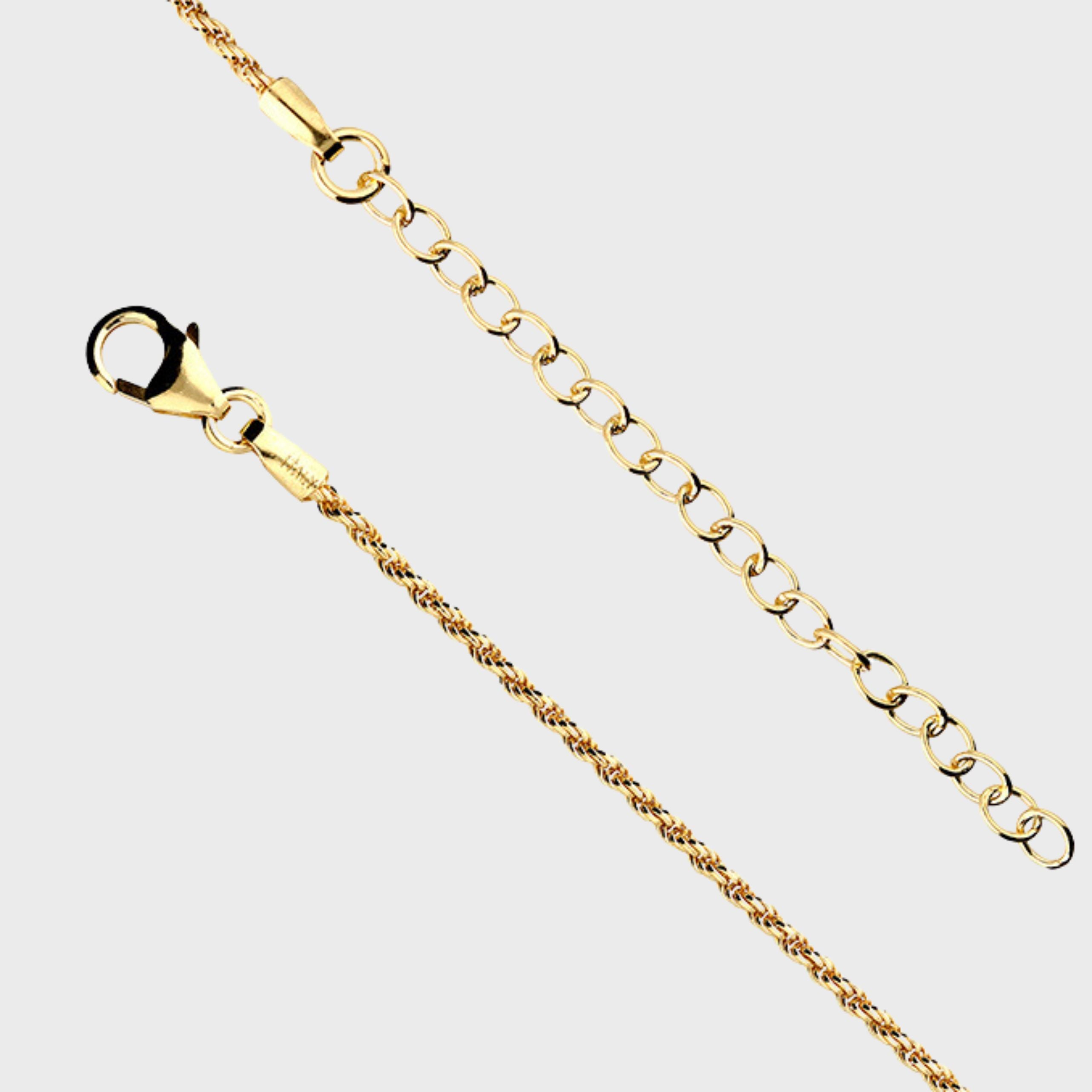 Make a statement with this Delicate Rope Chain Necklace. Crafted from sterling silver and 24ct gold plate for a timeless look, the elegant knot design adds a touch of sophistication to any outfit. The adjustable length ensures a perfect fit.