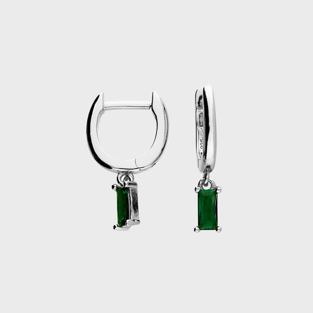 These high-quality Huggie Hoop Earrings are crafted with a stunning Emerald glass charm, sterling silver, and a choice of silver or 18ct gold plating. The eye-catching horseshoe shape and stunning glass charm will make you stand out in any occasion.