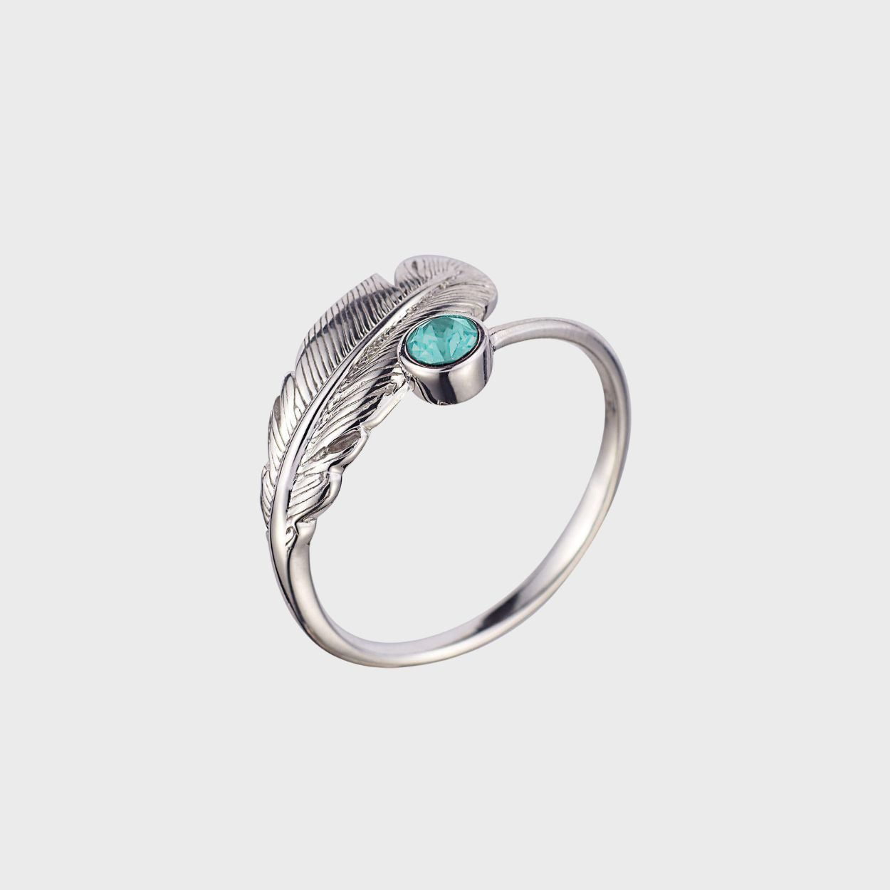 Perfect for birthday celebrations, the March feather birthstone ring is made from hand-finished 925 sterling silver and features a turquoise Swarovski crystal, bringing your loved ones' special day to life.