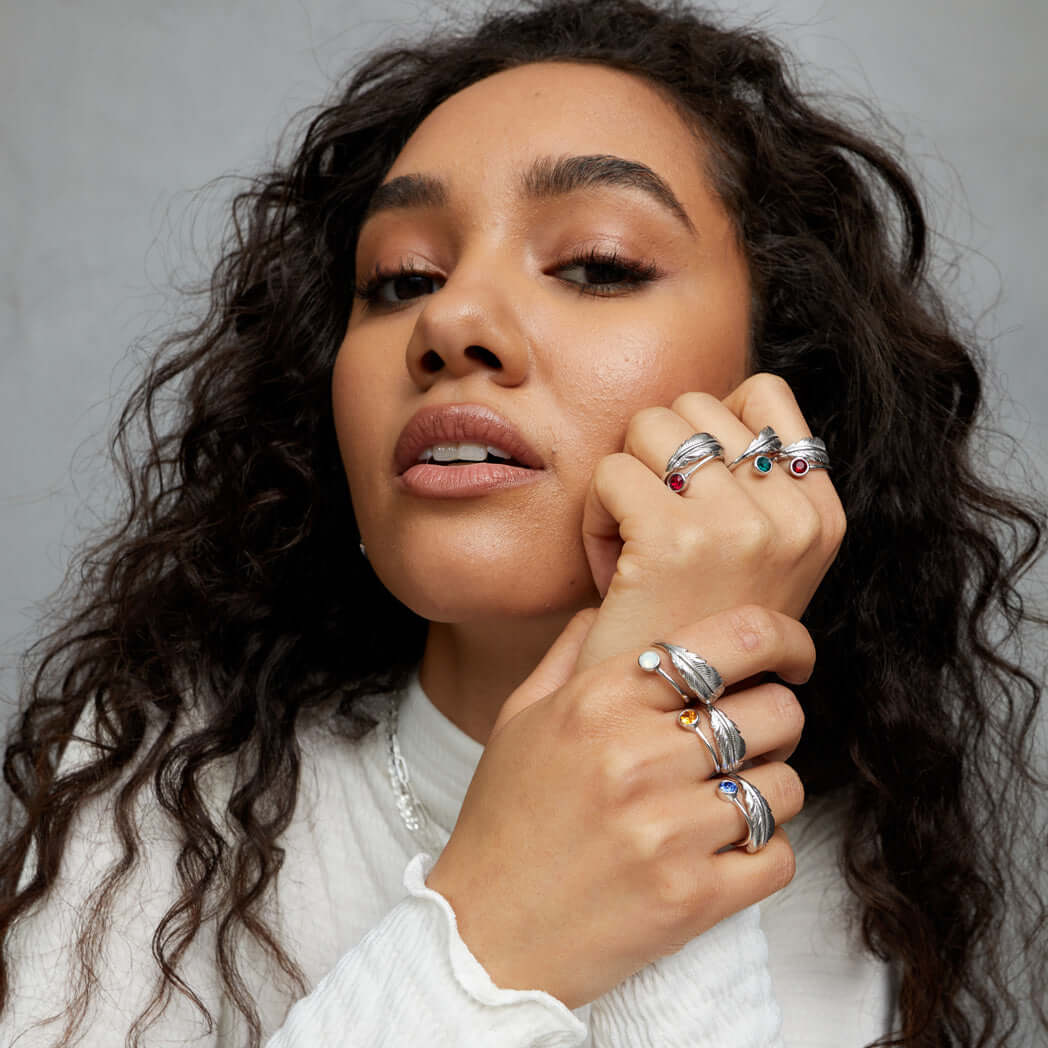 Meaning: Through its feather design, this birthstone ring brims with positive light energy, helping to dispel negative energies while symbolising the protection of angels.