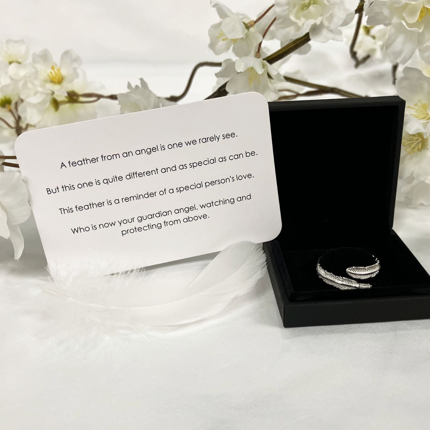 Paired with the Plume Ring, the poem becomes a gentle reminder that we are never truly alone – love lives on, carried by the wings of our guardian angels.