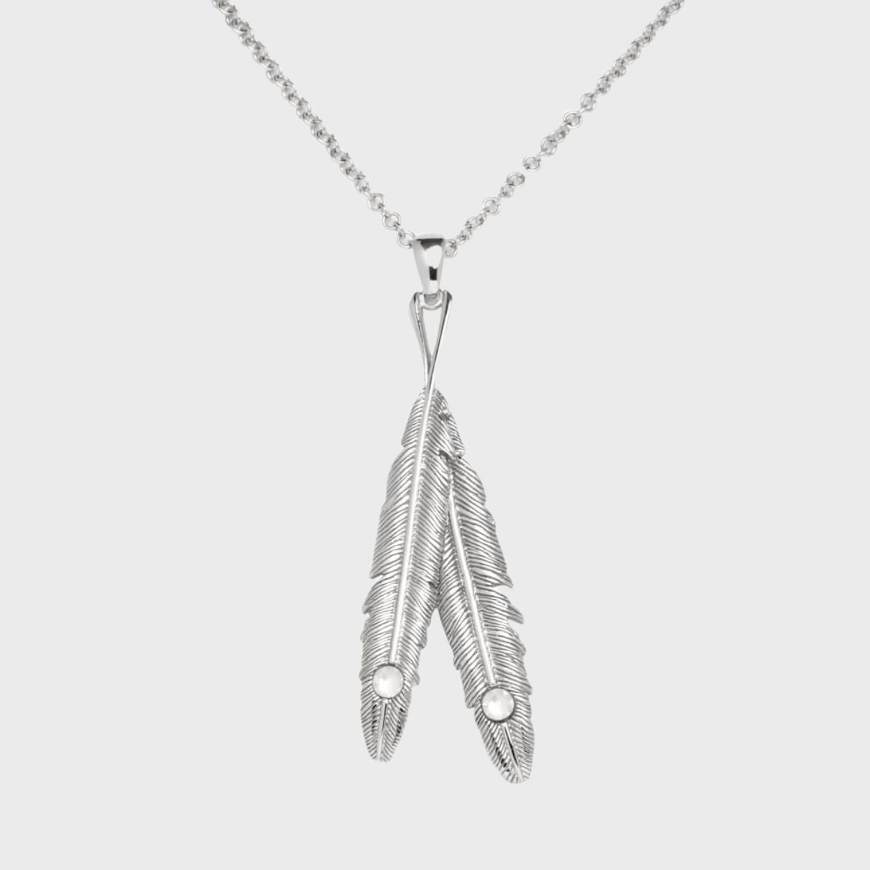 Silver Gemstone Feather Necklace